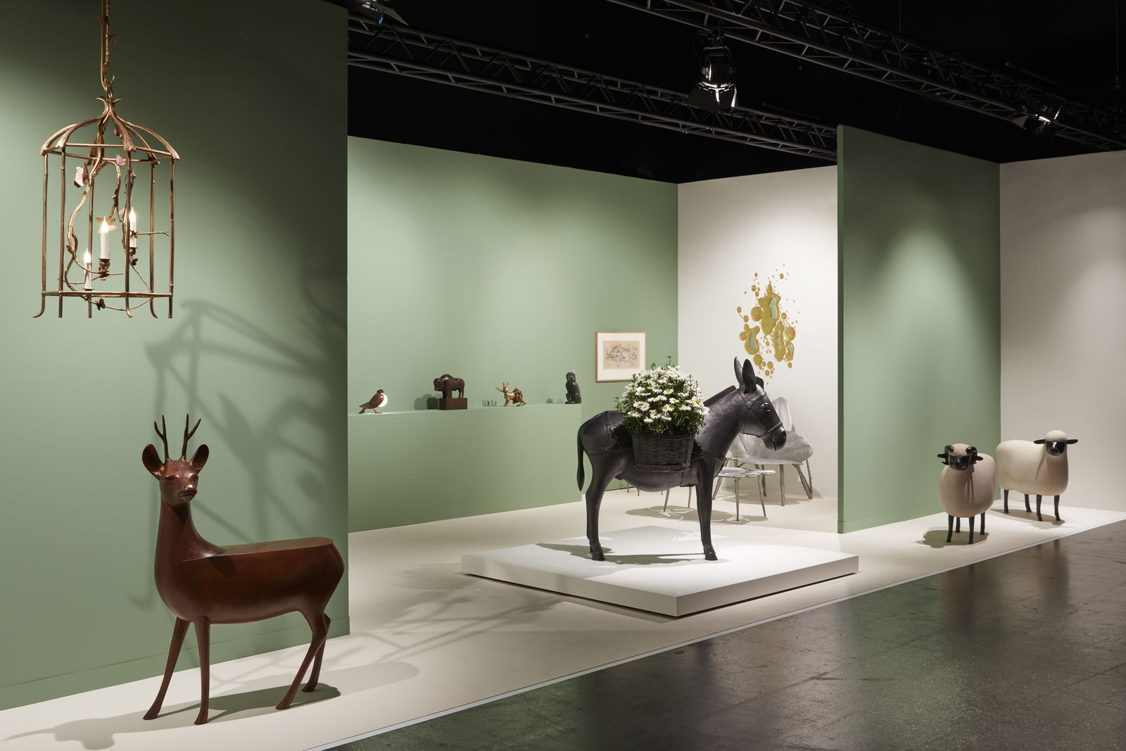 Cette œuvre exceptionnelle sera accompagnée d’autres œuvres majeures de l’artiste, notamment, deux Moutons de pierre exposés à Versailles en 2021, deux Oies créées à l’origine pour la ville de Sarlat en Dordogne et les incontournables Singe Allumé ou Singe Attentif. Plusieurs œuvres de Claude Lalanne côtoieront celles de son époux, avec notamment une rare Lanterne, un Bambiloba, un Banc Williamsburg et des sculptures iconiques telles qu’un Lapin Chou ou une Pomme Bouche.
